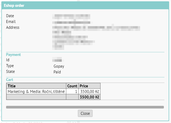 Chcete-li zobrazit detailní informace o objednávce, klikněte na ikonu [i] na začátku řádku.