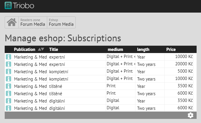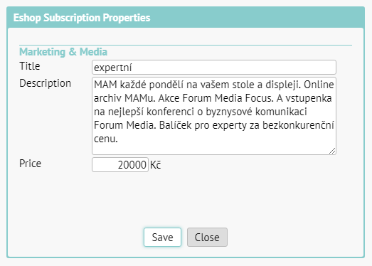 V administraci e-shopu můžete editovat i nabídku jednotlivých předplatných, které prodáváte. Můžete měnit jejich popis a ceny.